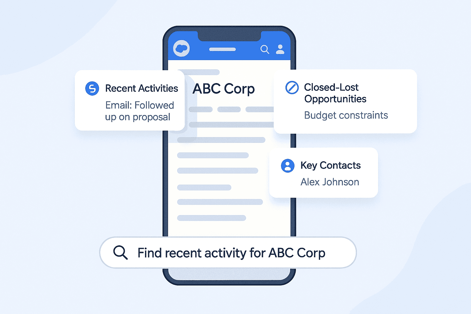 With our latest feature, reps can effortlessly pull up crucial historical details with just one simple command, instantly revealing: